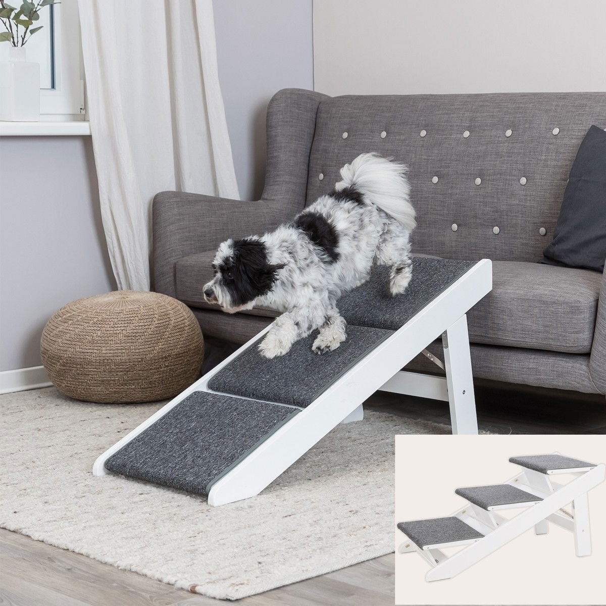 Hundetrapp er et praktisk hjelpemiddel for hunder som trenger støtte til å komme seg opp i sofaen, sengen eller bilen. Den gir trygghet, reduserer belastning på ledd og passer spesielt godt for små, eldre eller rehabiliterende hunder.