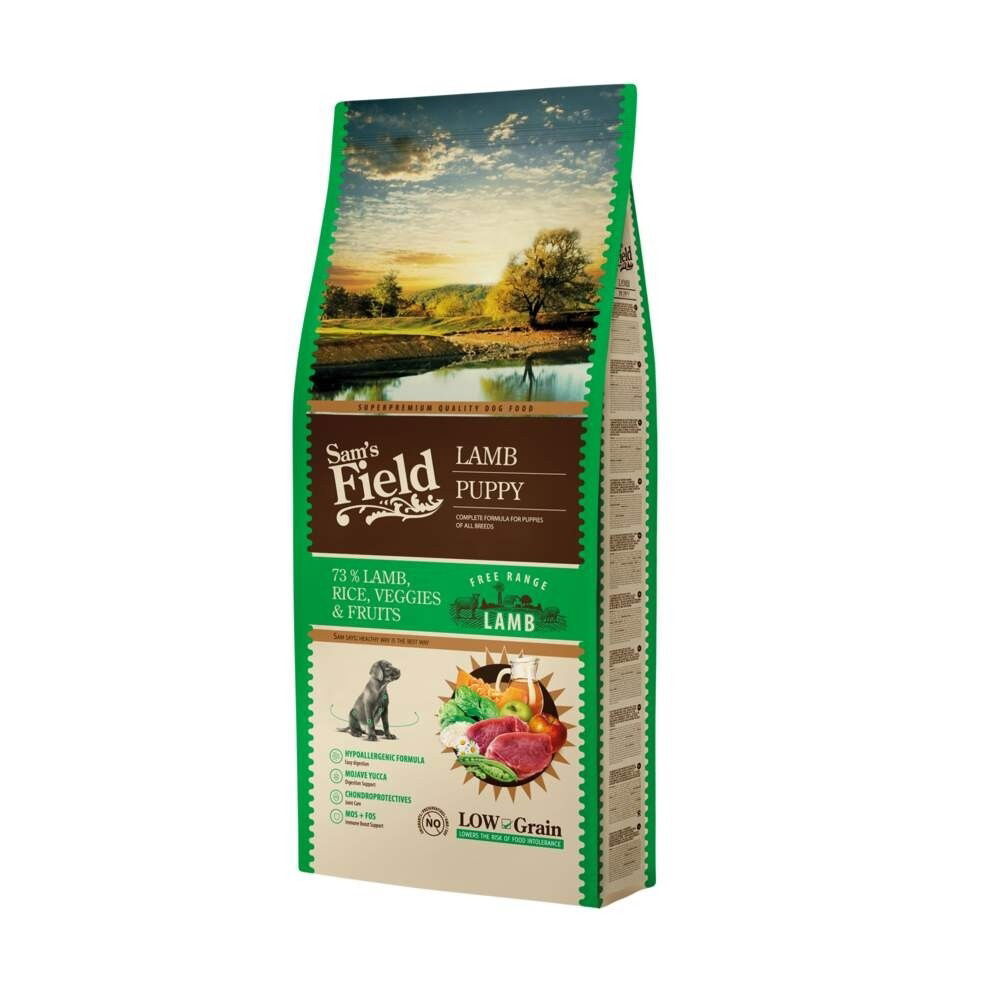 - Sam's Field Puppy Chicken & Potato: Tørrfôr for valper med høyt proteininnhold og tilpasset næringsprofil for vekst og utvikling.